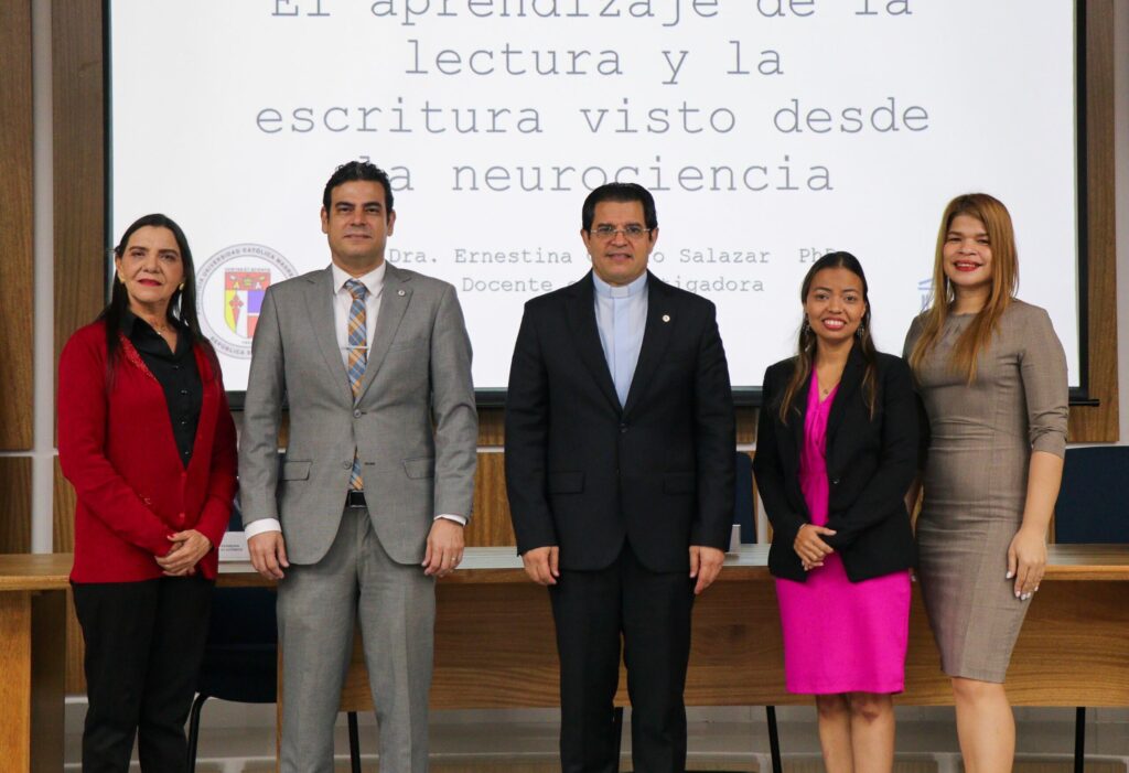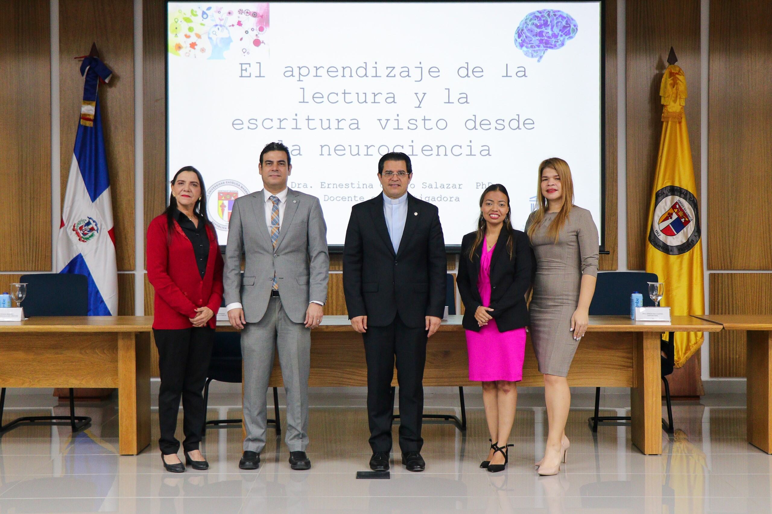 Santiago, R.D.-El relanzamiento de la Cátedra de la Organización de las Naciones Unidas para la Educación, la Ciencia y la Cultura -Cátedra Unesco-, en formación docente e investigación en lectura y escritura edición 2024-2028, dio inicio este martes con la conferencia “Aprendizaje de la lectura y la escritura, visto desde la neurociencia”, impartido por la doctora Ernestina Castro Salazar, docente e investigadora de la academia. Este evento fue organizado por la Escuela de Lenguas, de la Pontificia Universidad Católica Madre y Maestra (PUCMM).